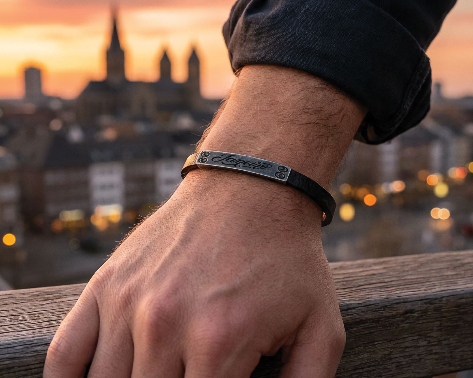 Dieses hochwertige Armband vereint zeitloses Design mit persönlicher Note. Gefertigt aus robusten Materialien und veredelt mit einer individuellen Gravur, ist es das perfekte Geschenk für besondere Anlässe oder als stilvolles Accessoire für den Alltag. Wähle deinen Wunschtext und mache dieses Schmuckstück zu einem einzigartigen Begleiter.