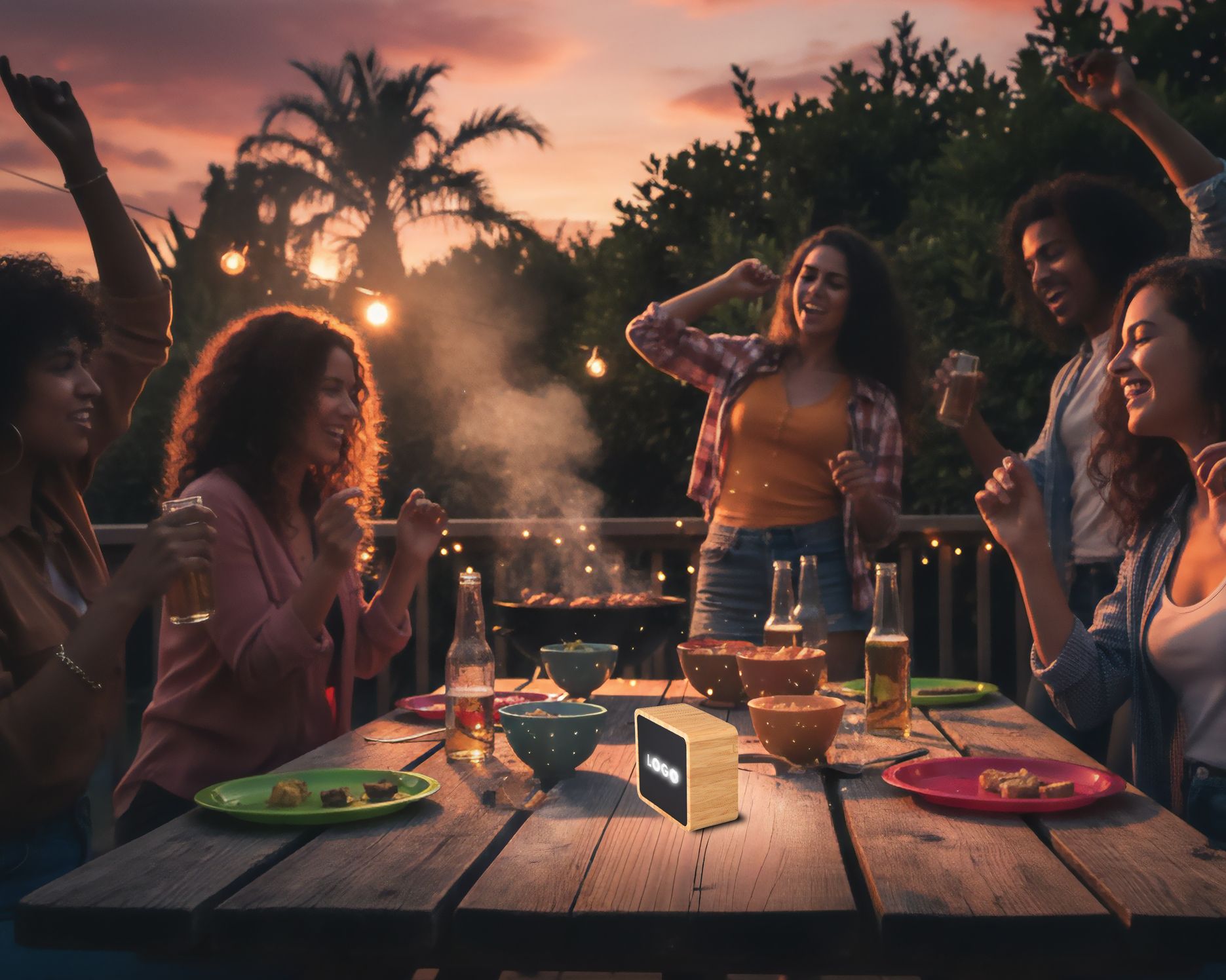 Dein Sound. Dein Licht. Dein Bambus-Speaker mit Leucht-Motiv.