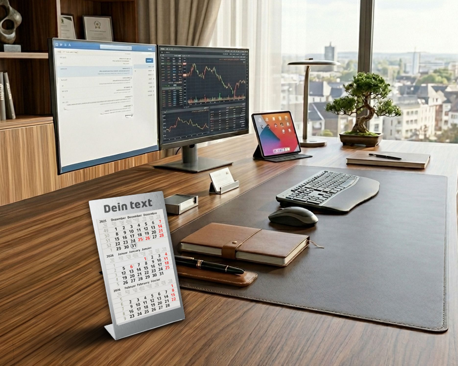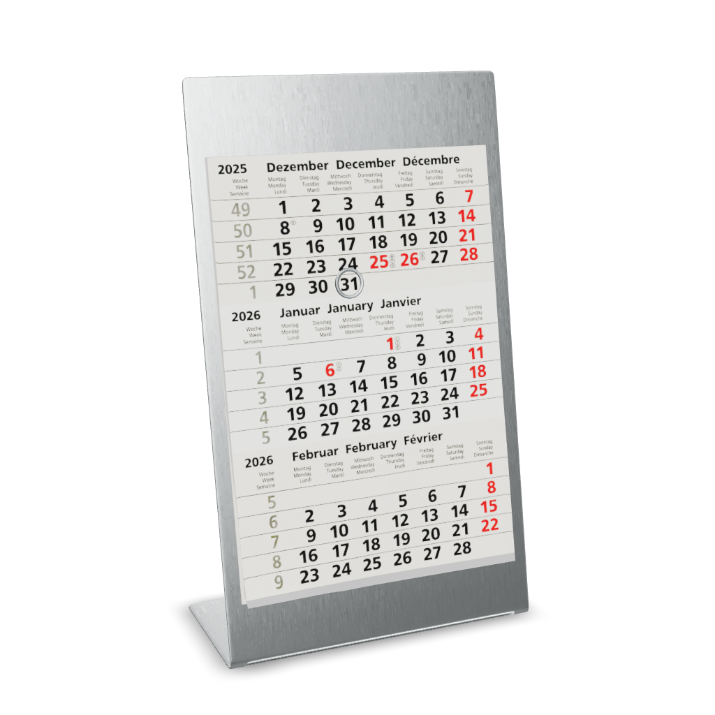 Schluss mit Papier-Chaos. Das ist dein letzter Schreibtischkalender. Ein pures Design-Statement aus gebürstetem Edelstahl. Er läuft nie ab! Du markierst Tag und Monat einfach mit dem coolen Magnetring. Im Konfigurator wird er zum Unikat: Graviere „Chefbüro“, „[Name]s Headquarter“ oder „Mach’s möglich“. Das ultimative, stilvolle Upgrade für jeden Schreibtisch.